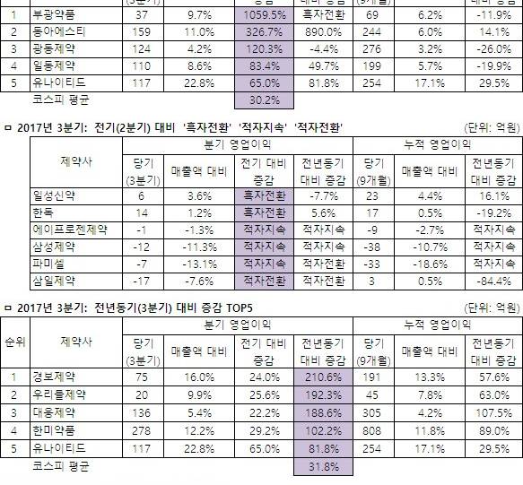 상장제약 누적순익 증가율 톱5 '안국 국제 신풍 동아ST 조아'