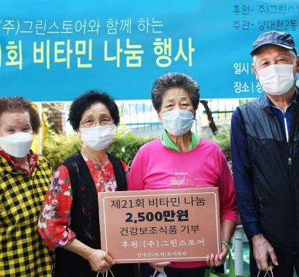 - 그린스토어(대표 김건수)는 최근 어르신들의 건강을 위해 성남시 상대원2동 제1복지관에 2,500여 만 원 상당의 건강기능식품을 후원했...