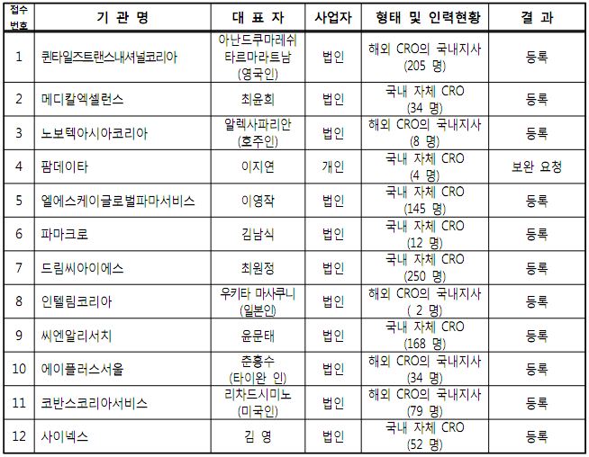 임상시험수탁기관 민간주도 '자율등록제'에 따라 심의가 완료된 CRO업체가 발표됐다.