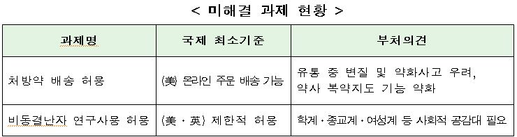 처방약 배송 문제는 복지부의 반려 의견 제출로 일단 불허됐으나 추후 상황은 지켜봐야 한다.