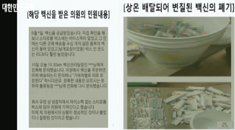 그러나 안전한 백신유통이 이뤄지지 못하고 있으며, 관련부처는 안전사고에 대한 책임을 회피하고 있다는 지적이다.
