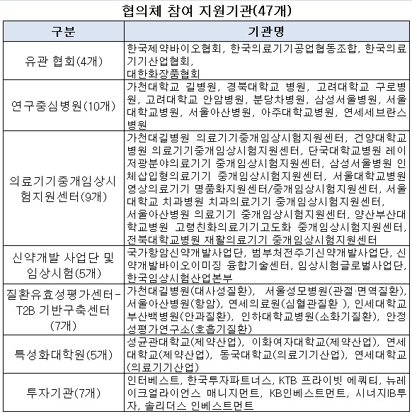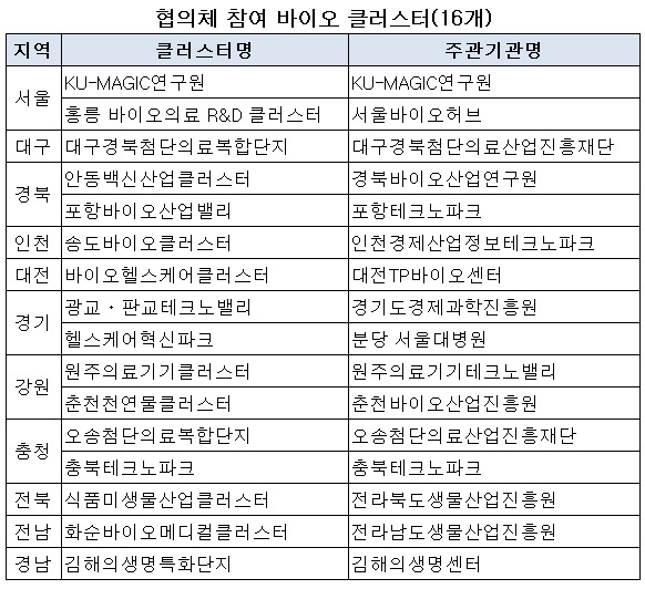 이를 위해 협의체에는 바이오클러스터(16곳)와 지원기관(47개)이 참여해 총 64개의 관계기관이 협력해 바이오헬스 생태계 구성을 위해 노력하게 된다.