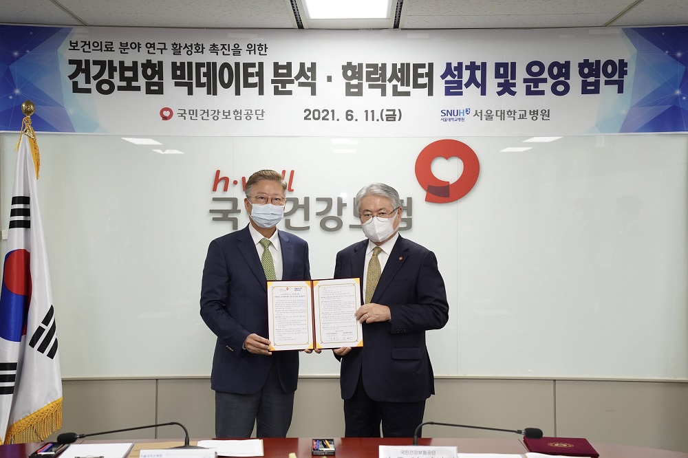 국민건강보험공단(이사장 김용익)은 11일 서울대학교병원(병원장 김연수)과 보건의료 분야 연구 활성화를 위한 ‘건강보험 빅데이터 분석․협력센터 설치 및 운영 업무협약’을 맺었다고 밝혔다.