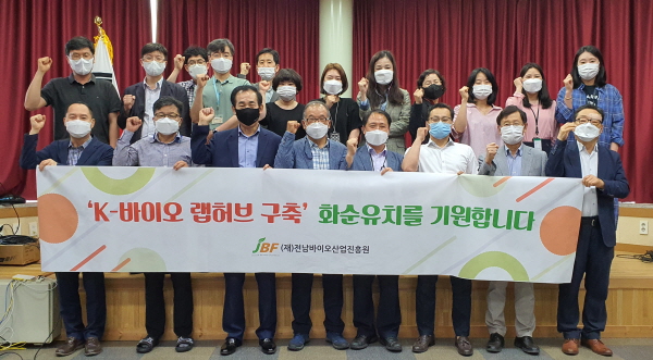 전남바이오산업진흥원(원장 황재연)이 중소벤처기업부 주관 ‘K-바이오 랩 허브 구축 사업’ 후보지 공모에 화순 백신산업특구가 최적지임을 전 직원이 서명으로 함께 한다고 밝혔다.