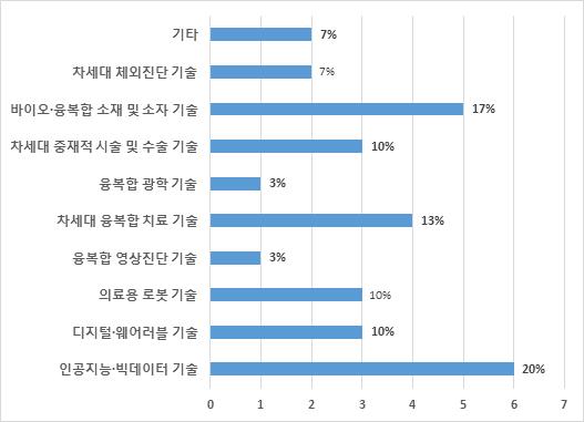 지난해 길라잡이 서비스에 선정된 의료기술의 77%는 식약처 허가 전 단계 기술이었으며, 세부적으로는 의료기술 분야 측면의 인공지능·빅데이터 기술(20%)과 바이오·융복합 소재 및 소자 기술(17%)순으로 많았다.