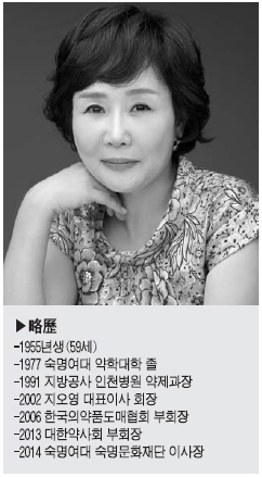 조선혜 회장은 숙명여대 약학대학을 졸업하고 지방공사 인천병원 약제과장으로 근무한 바 있으며, 대한약사회 제약유통이사를 거쳐 현재는 대한약사회 부회장으로 활동하면서 의약품 유통과 약사직능 향상을 위해 노력하고 있습니다. 모교인 숙명여대 숙명문화재단 이사장으로 재직하면서 연구소 연구 활동 지원, 여성인재 프로그램 운영 등 다양한 활동을 통해 창조시대에 걸맞는 여성인재 양성에도 주력하고 있습니다.