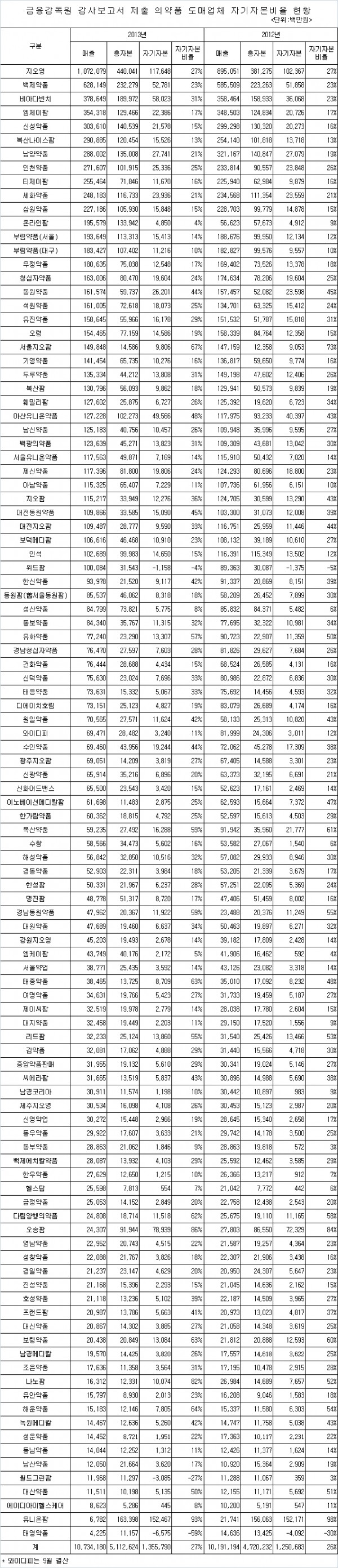 약업닷컴(www.yakup.com)이 금융감독원에 제출한 2013년 감사보고서를 제출한 107개 의약품 도매업체들의 자기자본비율을 분석한 결과 평균 27%라는 불량한 수치가 나왔기 때문이다.