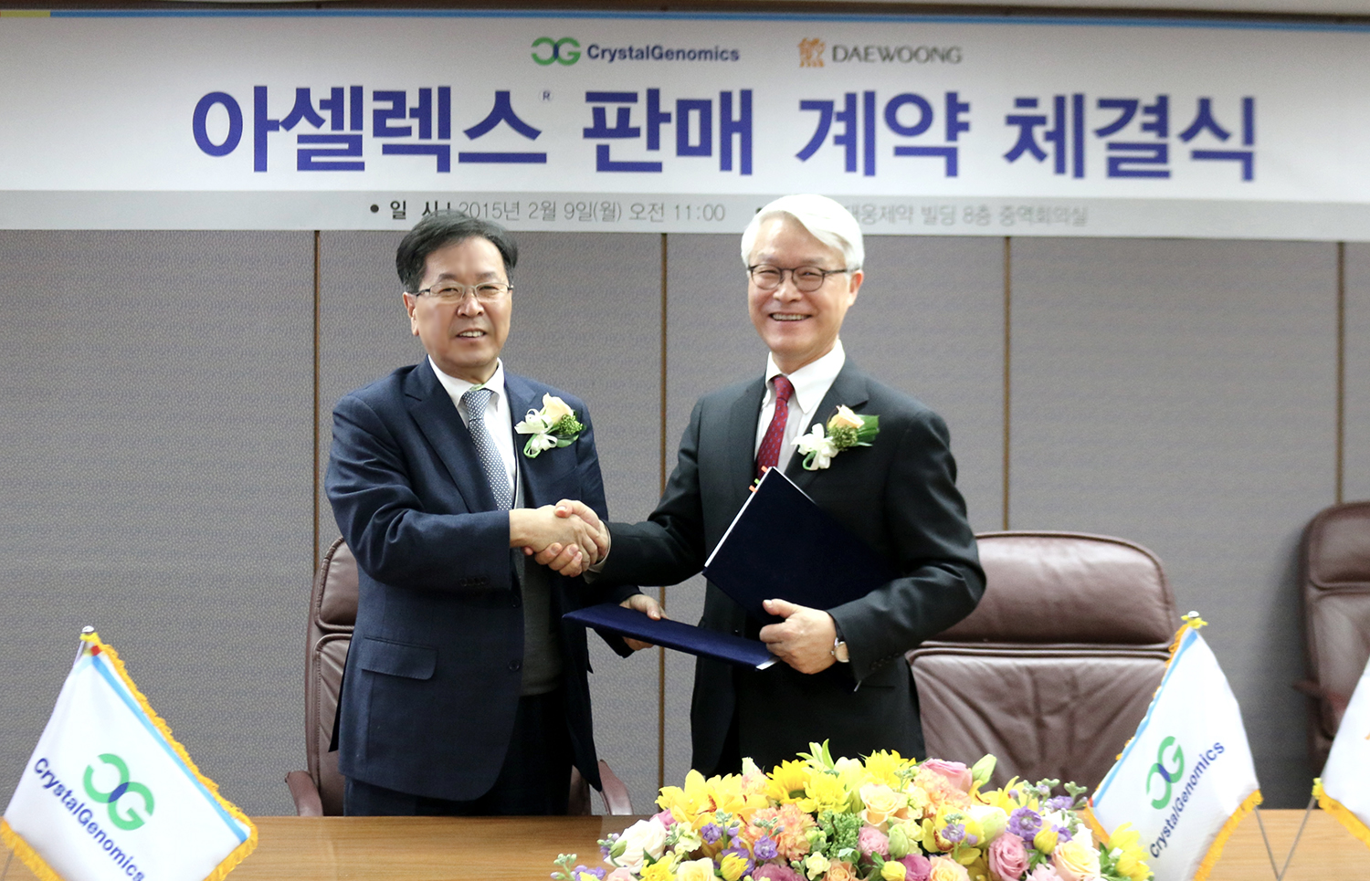 신약개발 바이오벤처 크리스탈지노믹스는 지난 5일 신약허가 승인을 받은 '아셀렉스' (Acelex, 비스테로이드 소염제)의 국내 판권계약을 대웅제약과 체결했다고 2월 9일 공시했다.