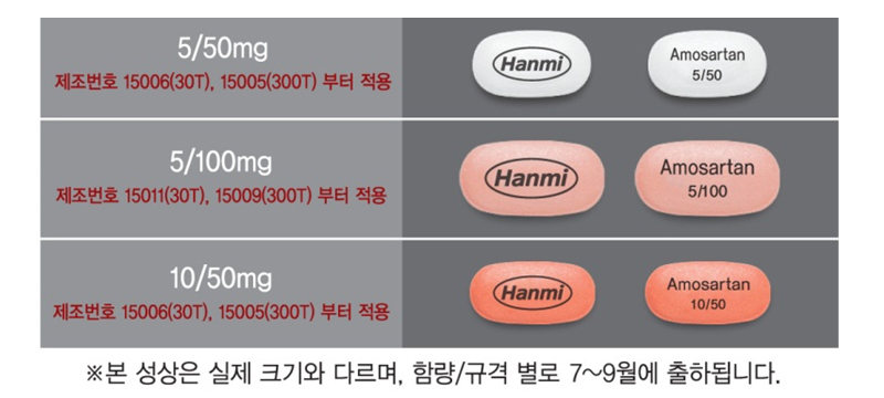 레이저 인쇄방식을 적용한 아모잘탄은 5/50mg, 5/100mg, 10/50mg 등 3가지 함량과 30T, 300T 등 2가지 규격별로 7~9월 사이에 순차적으로 출하될 예정이다.