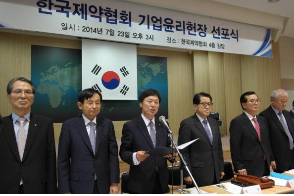 한국제약협회(회장 이경호)는 지난해 7월 23일 협회 기업윤리헌장을 선포하고 윤리강령·표준내규를 제정한지 1년을 앞둔 22일 윤리경영 자율진단지표 개발에 본격 착수, 이번주중 전문 기관을 선정해 개발 용역 계약을 체결할 예정이라고 밝혔다.