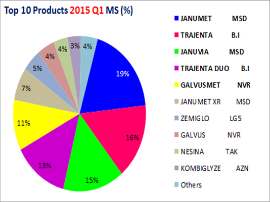 2015년 1분기 현재 4,500여억원(전년동기대비 12.8% 성장, 2011-2015 연평균성장률 5.5%)인 경구용 당뇨병치료제 시장 중 DPP-4억제제는 1분기 2,600억원(22.4% 성장, 2011-2015 연평균성장률 41.9%)으로 58%를 차지했다.