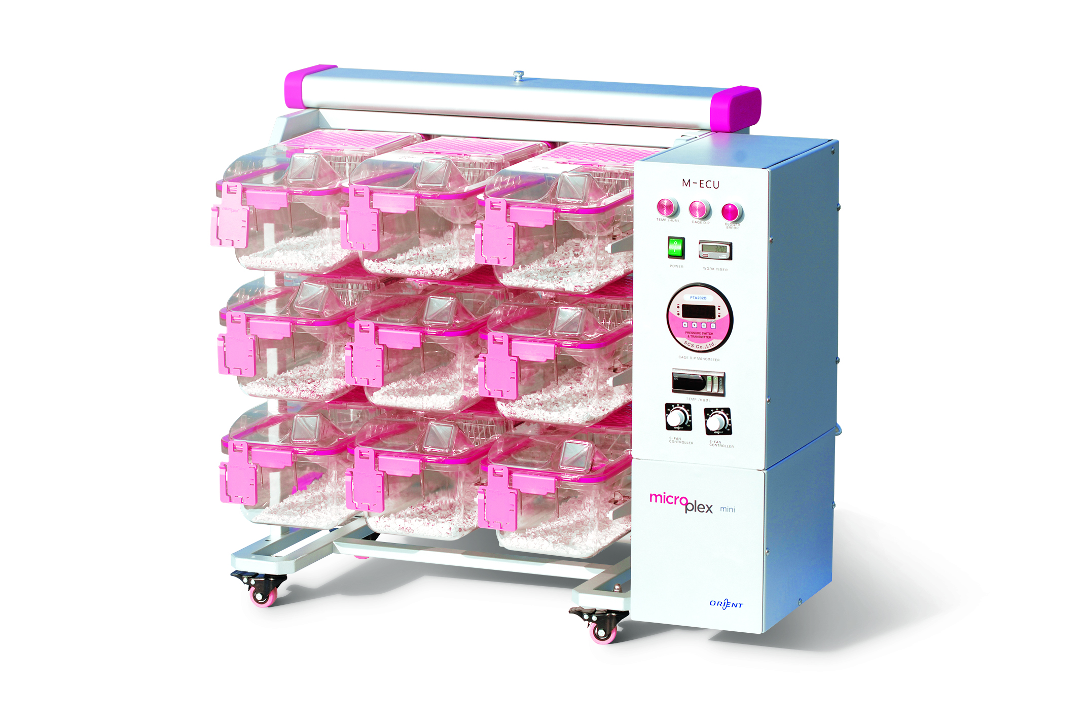 또 마이크로플랙스 미니는 높낮이 조절뿐만 아니라 3X3 배열의 9개 케이지 시스템을 기본으로 하며, 3X9 배열의 27개까지 케이지 수를 자유자재로 조절할 수 있도록 했다. 이와 함께 전원이 있는 곳이라면 좁은 장소에도 상관없이 어디에나 비치하여 실험을 진행할 수 있어 실험연구자의 책상 옆 같이, 원하는 곳 어디에나 두고 관리 관찰할 수 있는 것도 장점이다.