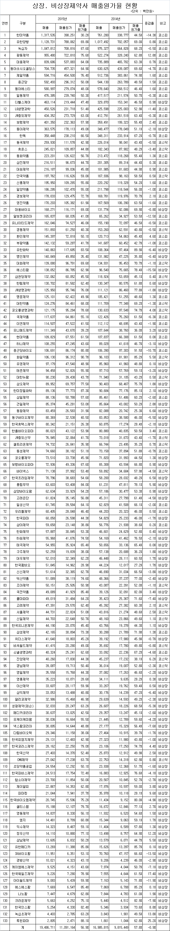 비상장 제약사의 매출원가율은 55.5%였다. 2014년의 56.1%에 비해 다소 낮아진 것이다.