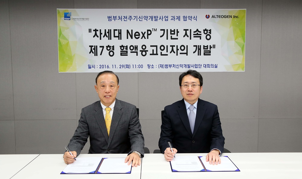 알테오젠 관계자는 “지속형 성장호르몬 개발 과정에서 안전성과 효능이 검증된 NexP 융합기술을 활용해 지속형 혈우병치료제를 개발 중이기 때문에, 신약에 비해 개발 성공 가능성이 높다”며, “과거 빈혈치료제인 EPO 나 항암보조제인 GCSF의 경우에도 지속형 제품이 개발되면 전체 시장의 50% 이상을 지속형 제품이 차지하는 것으로 나타났기 때문에, 지속형 혈우병치료제도 개발에 성공하면 전체 제7형 혈액응고인자 시장의 50% 이상을 차지할 것으로 기대된다”고 밝혔다.