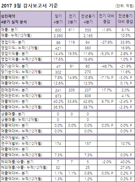 영업이익은 421억으로 16.9%, 순이익은 302억으로 11.6% 각각 증가했다.