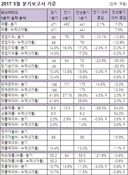 영업이익은 66억으로 12.8%, 순이익은 49억으로 30.3% 각각 감소했다.