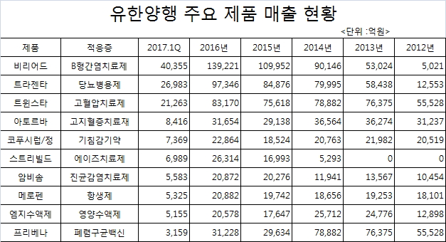 유한양행의 1분기 보고서에 따르면 B형 간염치료제 '비리어드'는 403억 5,500억원을 기록했다.