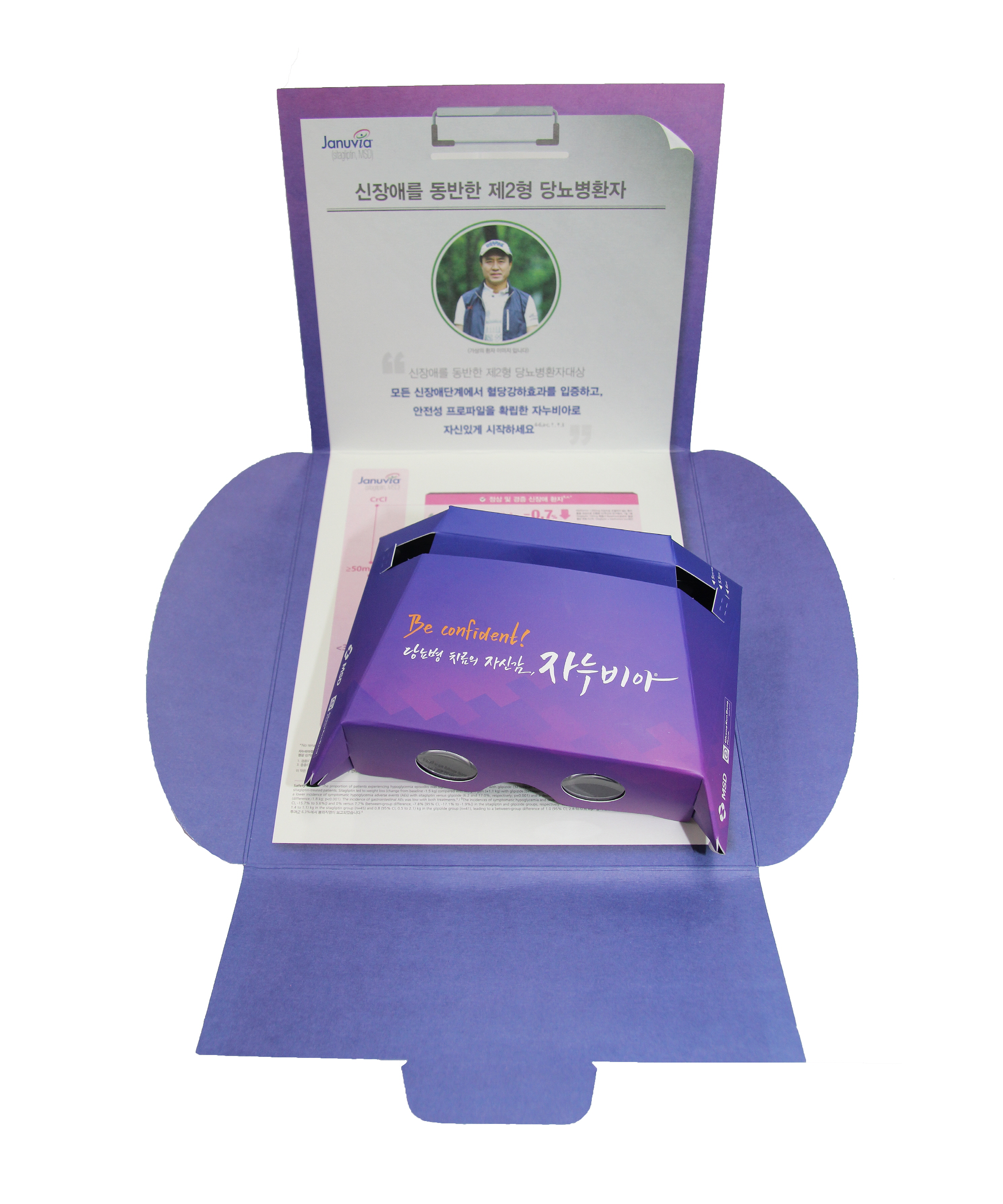 종근당과 한국 MSD는 의료진이 편리하게 프로그램을 활용할 수 있도록 VR기기를 직접 제작할 수 있는 키트를 제공한다. 조립된 VR 기기를 착용하고스마트폰을 통해 ‘자누비아VR 디테일’을 재생하면 신장애 환자,고령환자,초진환자 등 다양한 당뇨 환자들이 진료실을 방문해 상담을 받는 상황이 구현된다. 이어 가상의 자누비아 영업 담당자로부터 자누비아 임상 데이터와 기대 치료 효과, 유의 사항 등 당뇨 유형에 따른 맞춤형 치료 전략에 대한 정보를 소개 받을 수 있다.
