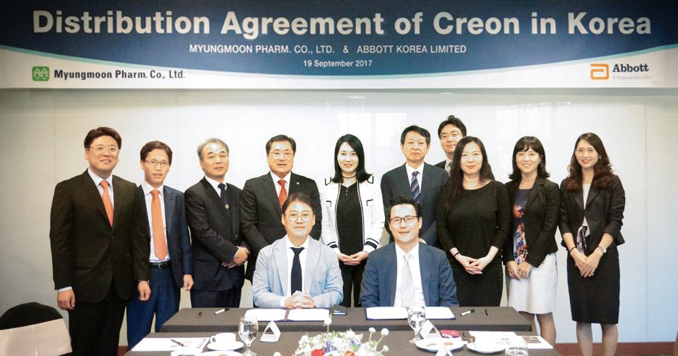 명문제약(대표 우석민, 박춘식)과 한국애보트(대표 이승윤)는 췌장 외분비기능장애에 효과적인 췌장효소대체제 ‘크레온’에 대한 코프로모션계약을 최근 체결했다..