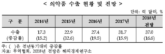 이러한 성장세에 따라 2018년 수출액은 전년대비 약 16.6% 증가한 37억 달러로 전망됐다.