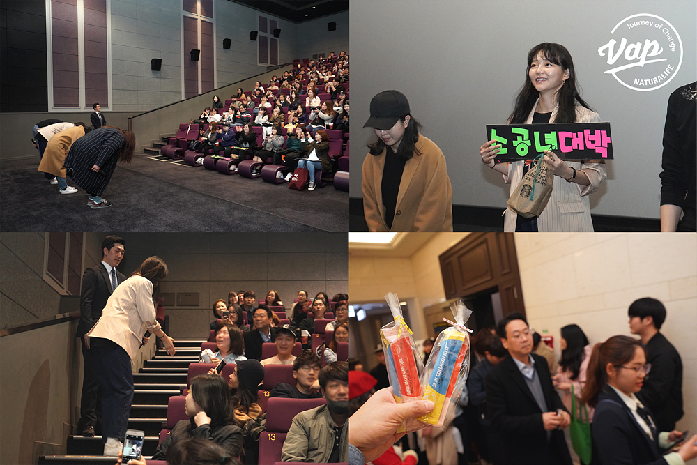 배우 이솜은 지난 24일과 25일 서울 지역 11개 극장을 직접 찾아 영화관을 찾은 관객들에게 진심 어린 감사와 함께 VAP의 주요 제품을 선물했다. 이번 무대 인사에는 전고운 감독과 주인공 이솜과 배우 이성욱, 황미영이 함께 했다.