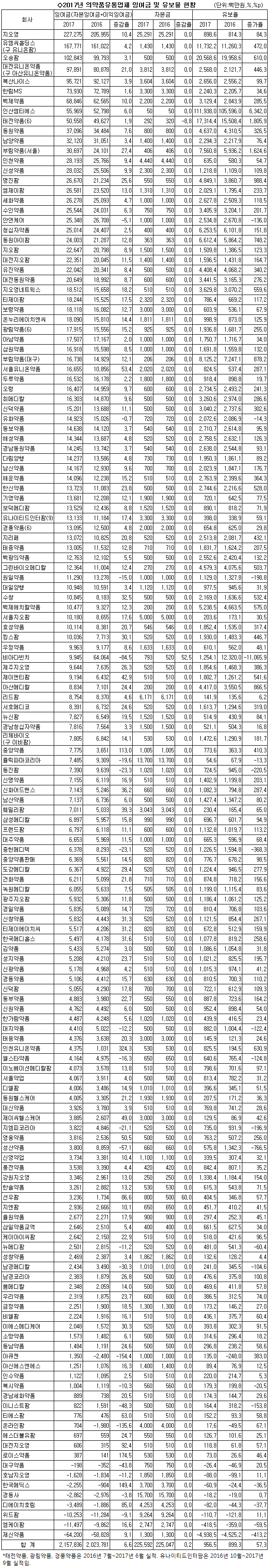 이들 업체의 2017년 말 자본금은 2,255억원으로 2016년 말 보다 0.2% 증가했다. 업체별로는 선우팜이 자본금을 5억원에서 8억원으로 60% 늘렸고, 비아다빈치가 5.2억원에서 7.9억원으로 52.5% 증가시켰다. 태전약품은 자본금이 3.2억원에서 2.9억원으로 8.8% 줄었다.
