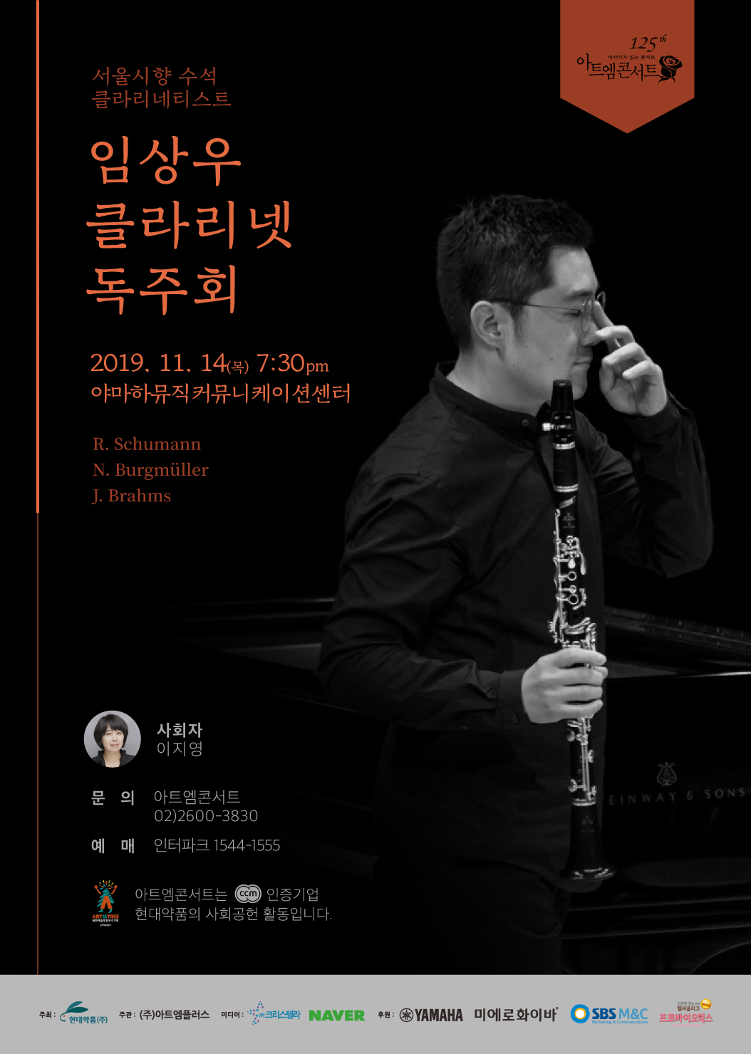 현대약품이 11월 14일 오후 7시 30분, 야마하뮤직커뮤니케이션센터에서 제 125회 아트엠콘서트, '임상우 클라리넷 독주회’를 개최한다.