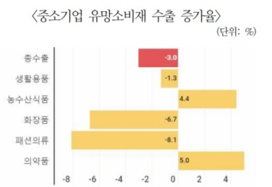 그중 고부가가치 품목에서의 선전이 눈에 띄었는데, 5대 유망소비재중에서도 부가가치가 높은 의약품(5.0%) 수출의 호조세가 지속되는 것으로 확인됐다.