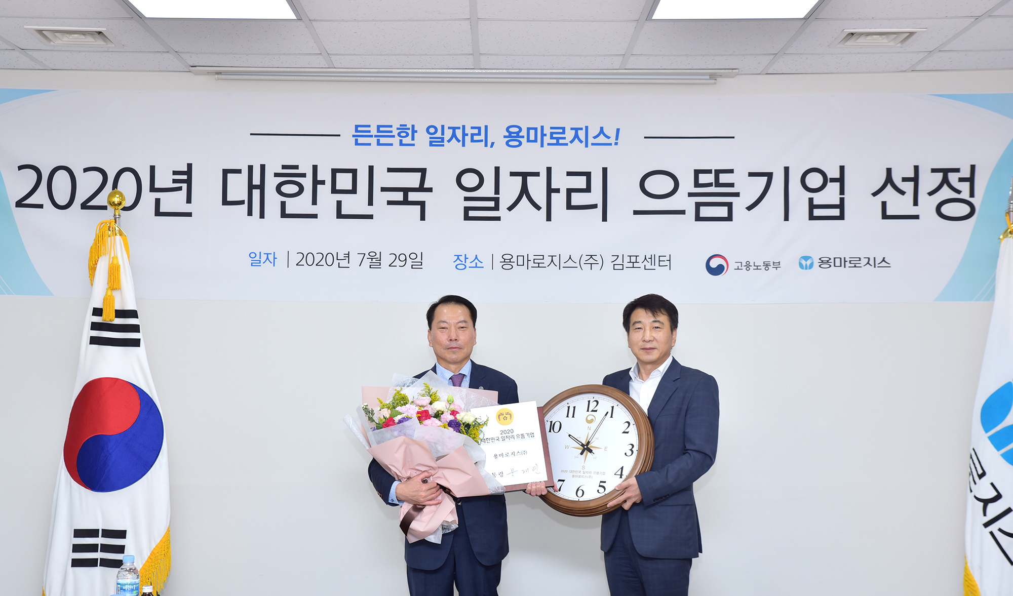 용마로지스(대표이사 사장 금중식)는 지난 29일 고용노동부가 주관하는 ‘2020년 대한민국 일자리 으뜸기업’에 선정돼 고용노동부 부천지청(지청장 공석원)과 김포고용복지센터(센터장 권진)로부터 인증패를 수상했다.