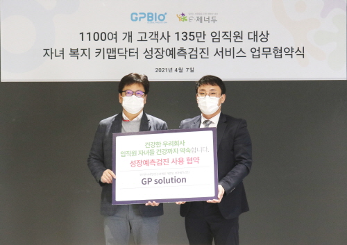 이번 업무협약을 통해 지피바이오는 이제너두의 1,100여개사 135만명의 기업고객에게 자사의 주력 제품인 키맵닥터 성장예측검진을 제공한다. 이제너두는 보유하고 있는 복지몰과 운영 노하우를 통해 키맵닥터 성장예측검진의 홍보와 판매를 담당할 계획이다.