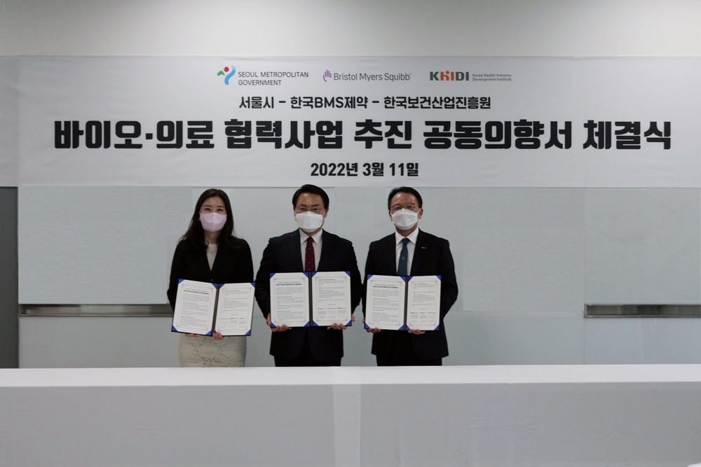 한국BMS제약(대표 김진영)은 지난 11일 서울특별시, 한국보건산업진흥원과 국내 바이오·의료 분야 혁신을 위한 협력 체계를 구축하는 공동의향서(LOI)를 체결했다고 밝혔다.