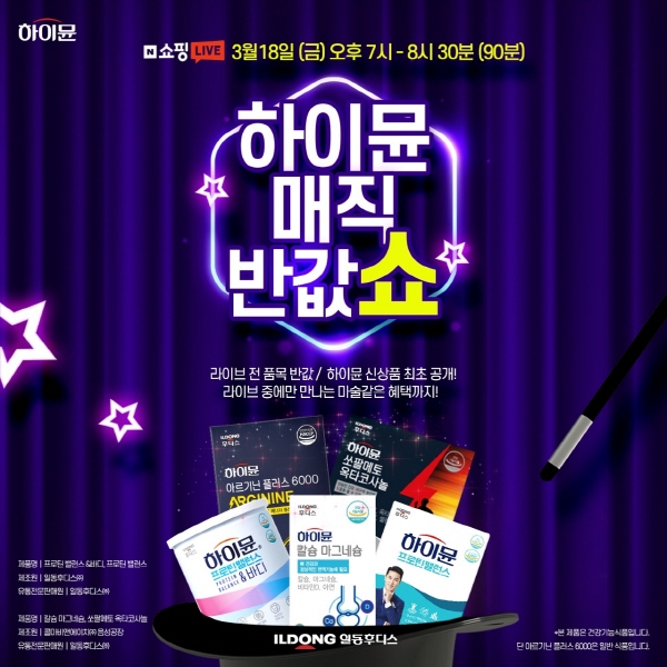 일동후디스가 18일 오후 7시부터 네이버 쇼핑라이브에서 ‘하이뮨 매직 반값쇼’를 진행한다고 밝혔다.
