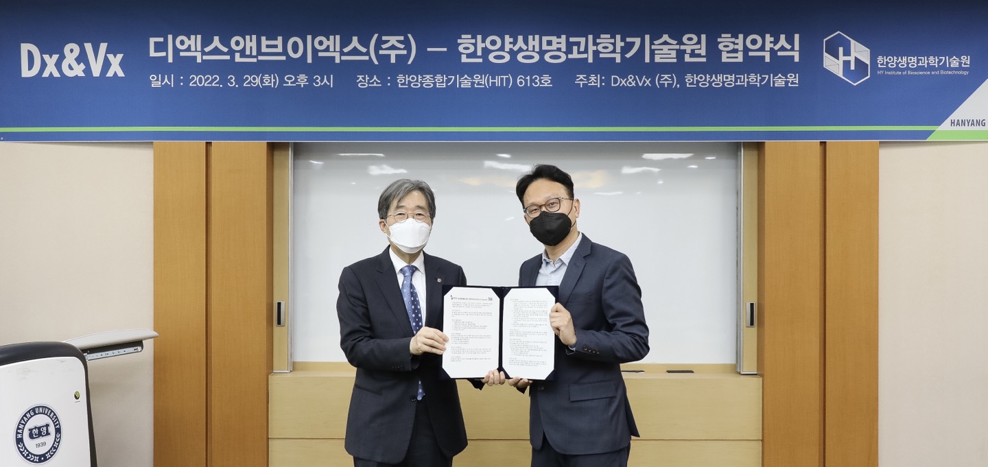 유전체 분석 및 분자진단 전문 기업 디엑스앤브이엑스(Dx&Vx, 대표 박상태)와 한양대학교 생명과학기술원이 지난 29일 한양대학교 한양종합기술원(HIT)에서 산학연 협력에 관한 양해각서를 체결했다.
