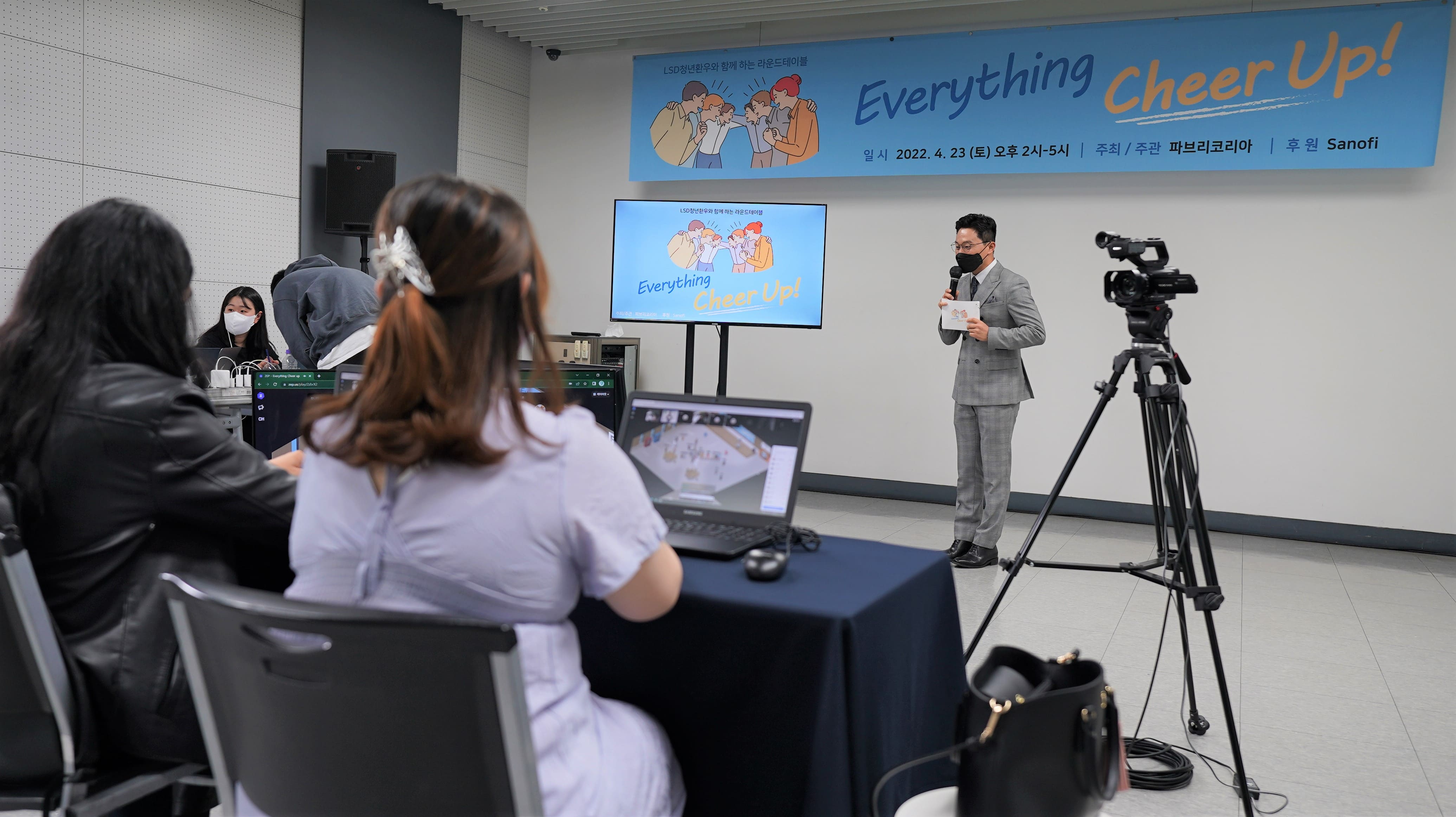 ▲‘Everything Cheer Up’ 라운드테이블에서 전문 MC가 행사를 진행하고 있다 - 사노피 제공