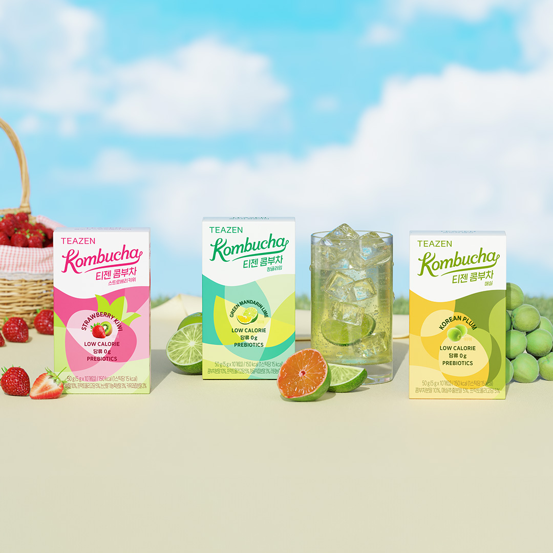 발효 건강음료인 콤부차 대표 브랜드인 티젠은 녹차, 홍차, 허브차 등 다양한 기능성 차를 선보인 노하우를 기반으로 2019년 국내 최초로 분말 스틱형 콤부차 제품을 선보였다. 저칼로리에 당류는 없애고 유산균을 함유한 콤부차는 건강한 탄산 음료로 사랑받으며 대한민국 1등을 넘어, 미국 아마존, 일본, 대만 등에서 큰 인기를 얻고 있다.