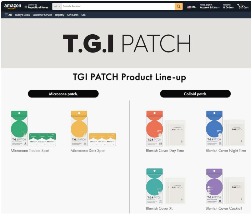 회사 측에 따르면 TGI패치는 여드름을 케어할 수 있는 일반 패치 저가용 4종(XL 12개, Cocktail 36개, Day Time 45개, Night Time 45개)과 마이크로니들패치 2종(트러블 6개, 색소침착 6개)으로 구성돼, 라파스 미국 판매법인인 퍼시픽바이오(Pacific Bio America Inc.)가 아마존에서 판매한다.
