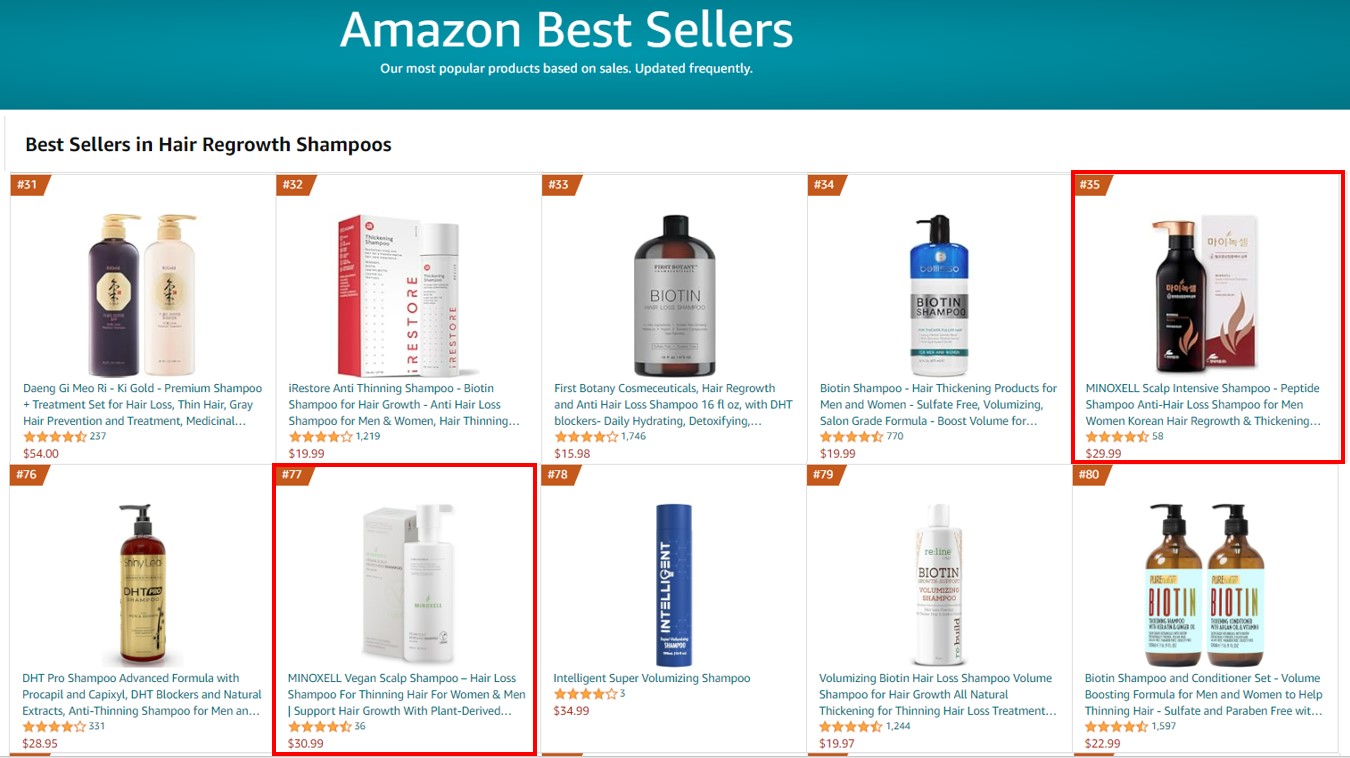 회사에 따르면 이번 행사에서는 마이녹셀 브랜드의 활약이 돋보였다. 마이녹셀의 스칼프 인텐시브 샴푸는 아마존 ‘Hair Regrowth’ 카테고리에서 35위, 비건 스칼프 샴푸는 77위를 기록하는 성과를 거두며, 올해 1월 아마존 입점 이후 단기간에 최대 판매량을 기록했다.
