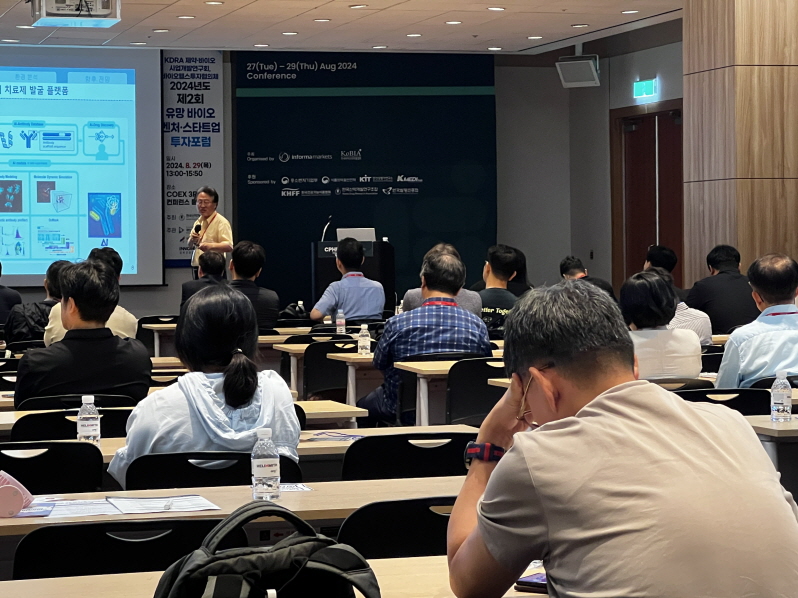 한국신약개발연구조합(이사장 홍성한)이 29일 서울 코엑스에서 제약·바이오·벤처·스타트업기업 및 증권사, 자산운용사, 투자자문사, 창투사 애널리스트, 심사역 등 투자기관 관계자 등 80여 명이 참석이 참석한 가운데 ‘2024년도 제2회 유망 바이오벤처·스타트업 투자포럼’을 개최했다.