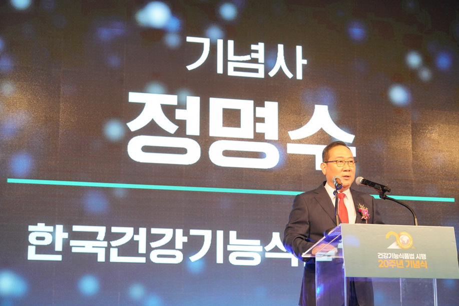 정명수 회장은 기념사에서 지난 20년간 건강기능식품 법 시행을 통해 이룩한 성과를 되돌아보며, “건강기능식품 법 시행 이후 과학적이고 체계적인 품질관리를 통해 건강기능식품을 고부가가치 산업으로 성장시켰으며 이제 글로벌 시장에서 더 큰 도약을 이룰 것”이라고 강조했다.