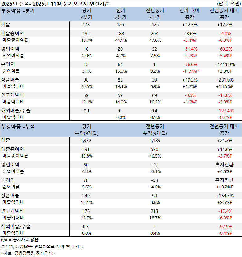 | 4 | 부광약품, 3Q 누적매출 1382억 원…전년比 21.3%↑ |