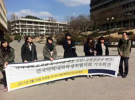 각 약대 학생회장들은 “대학은 학원이 아니다. 과도한 대학 등록금에 문제가 있다는 사회적 동의가 있다면 대학도, 정부도 이에 대해 책임지는 자세가 필요하다. 정부는 1,700여명의 약대 신입생들을 책임져달라”며 기자회견을 마무리했다.
