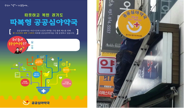 공공심야약국은 2015년 10월 10일부터 고양(푸른나무아래약국), 구리(큰사랑약국), 용인(대학당약국), 남양주(신성약국), 김포(한사랑약국), 평택(한미음약국), 총 6개 지역에 각 1개소씩 운영됐으며, 구리 지역의 약국이 폐업함에 따라 2016년 8월 1일자로 의정부 지역 약국(신세계약국)으로 대체되고 있다.