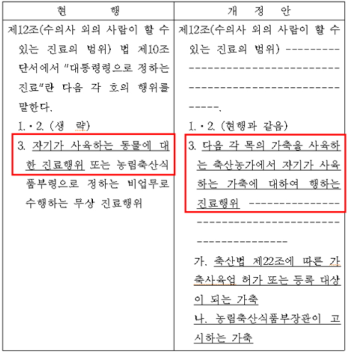 이 법안이 통과됨에 따라 가축사육업에 포함되는 가축을 제외한 개, 고양이에 있어 무분별한 외과수술과 자가 진료는 금지된다.