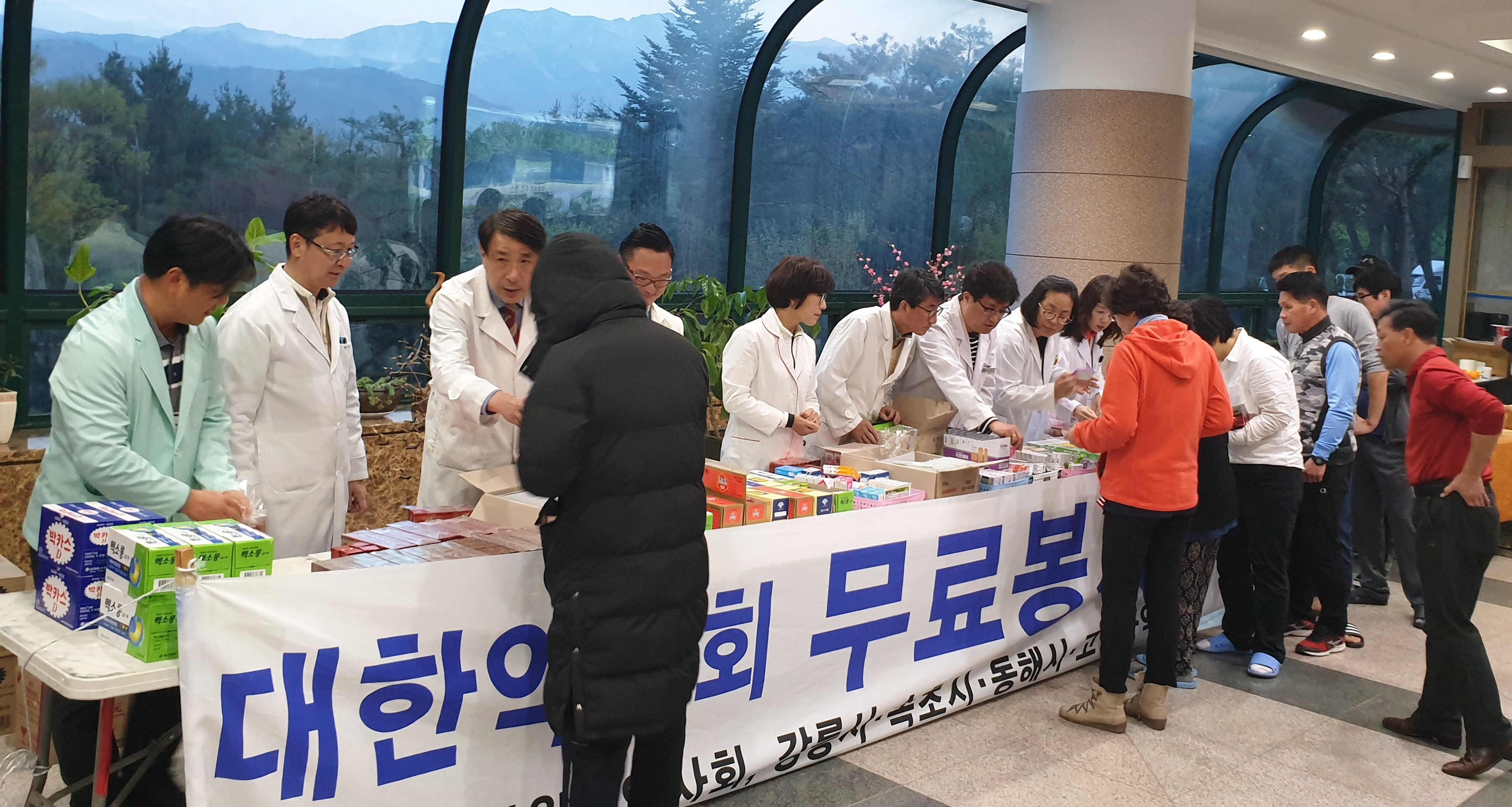 지난 4월 5일 발생한 동해안 산불로 엉겹결에 큰 피해를 당한 안타까운 이재민들을 위해 시작한 이동봉사약국은 지난 8일 동안 약사 53명과 이동봉사약국 자원봉사자 21명이 참여한 가운데, 총 1,700여명의 이재민에게 무료투약 봉사를 진행했다.