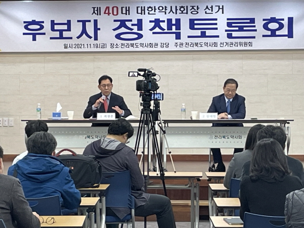 이날 정책토론회는 전라북도약사회관 4층 대강당에서 엄정신 전북약사회 부회장 겸 정책단장의 사회로 진행됐으며, 전북약사회원들의 의견을 수렴한 질문지를 두 후보에게 사전에 보내 공통 질의에 대한 두 후보의 답변을 듣고, 온라인 중계 댓글로 회원들이 보내온 질문들을 수집한 추가 질의와 참석한 회원들의 현장 질의가 이어졌다.