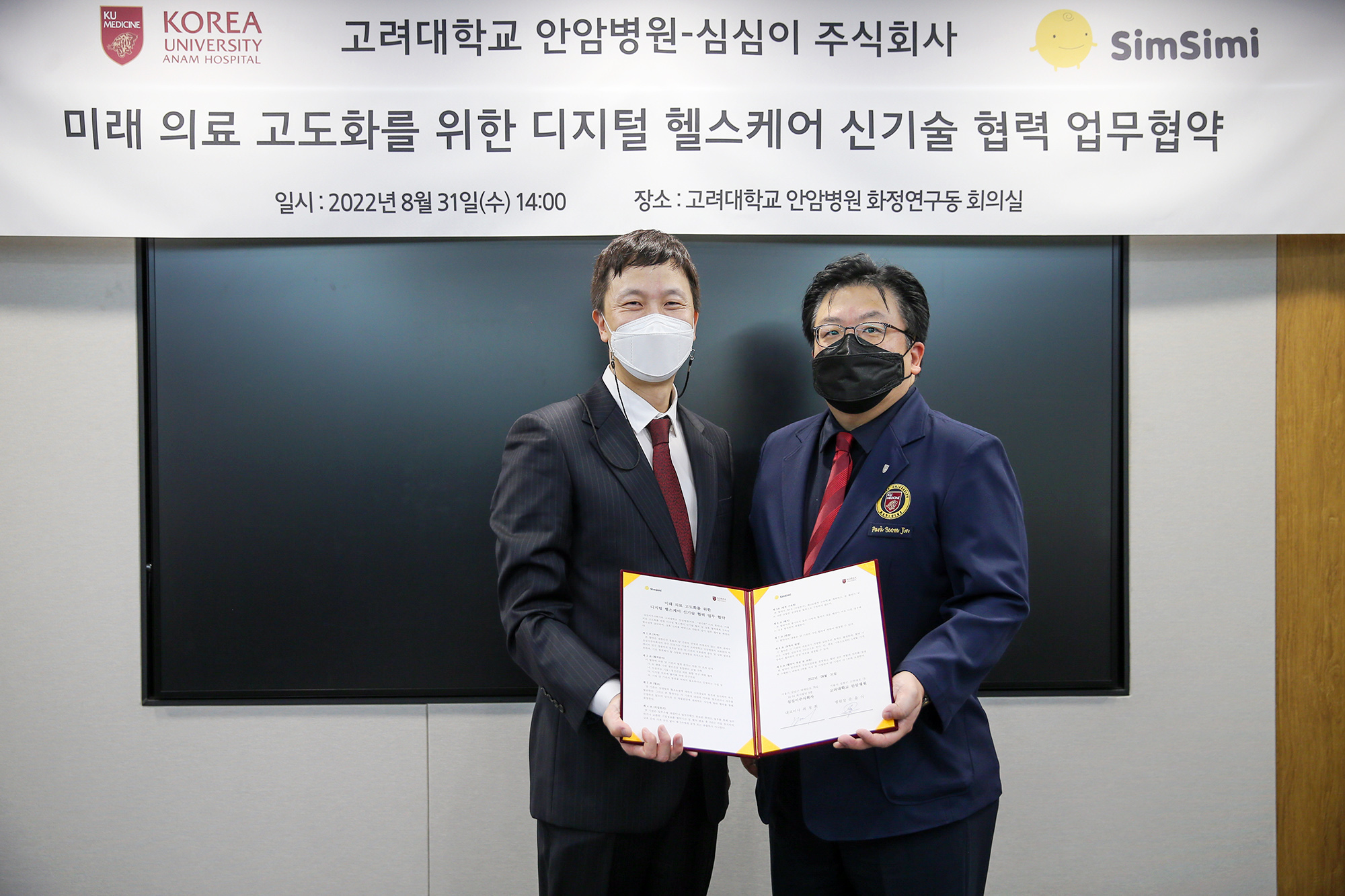 고려대학교 안암병원(원장 윤을식)은 최근 심심이(대표 최정회)와 인공지능(AI) 챗봇 기반 우울증 디지털치료기기 개발을 위한 디지털 헬스케어 신기술 업무협약(MOU)을 체결했다고 27일 밝혔다.