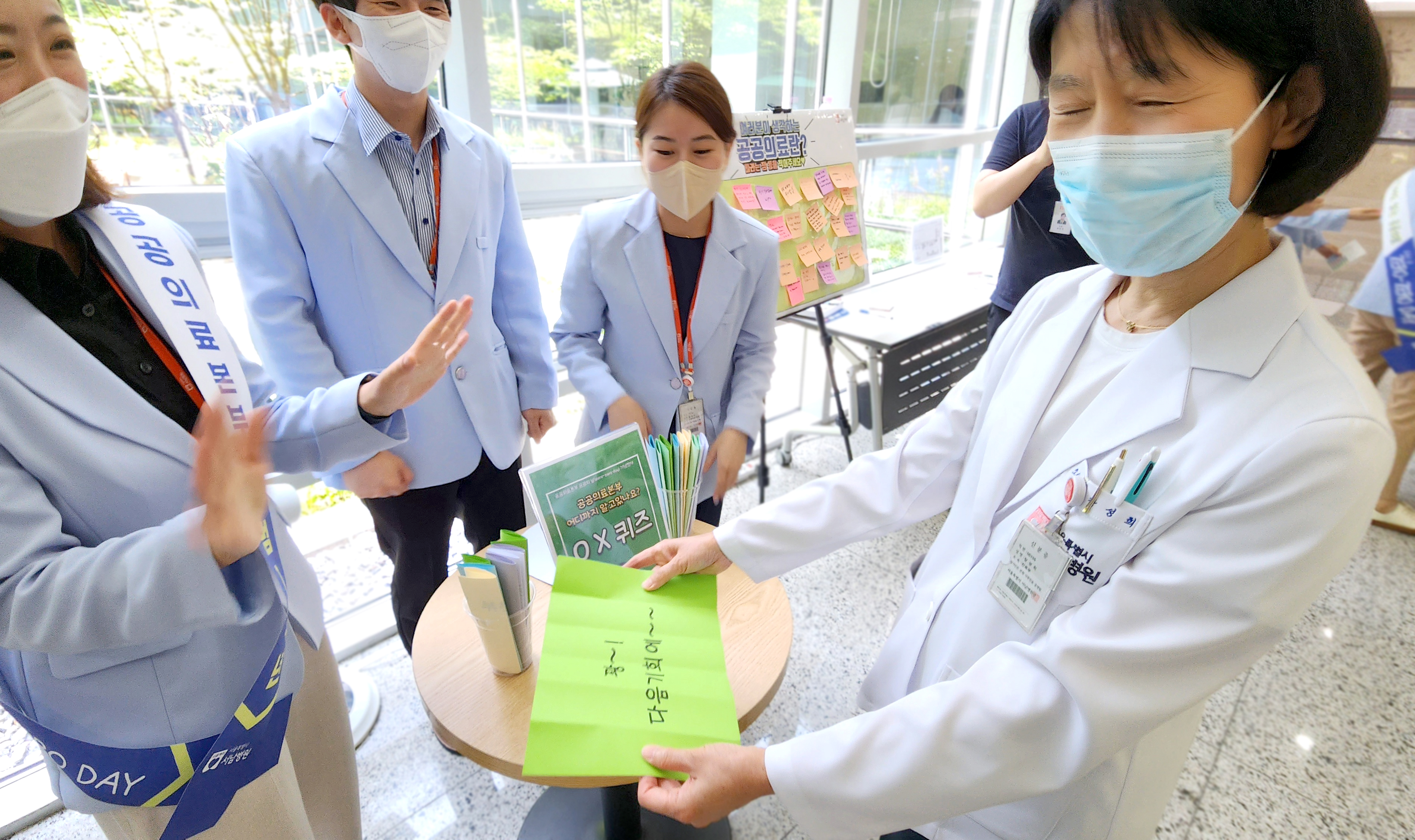 홍보 부스를 운영한 ‘ZERO-ZERO DAY’ 행사에서는 △공공의료 발전에 대한 바람을 담은 ‘희망 편지 보내기’(진행: 선연우 진료협력팀 파트장) △서남병원 공공의료의 과거와 현재를 알아보는 ‘도전 퀴즈왕’ 선발전(진행: 채하나 지역책임의료팀 파트장) △공공의료의 현장을 사진으로 공유한 ‘사랑 나눔 사진 콘테스트’ 개최(진행: 유지혜 공공의료사업지원팀 대리) 등 내원객과 직원을 대상으로 진행됐다.