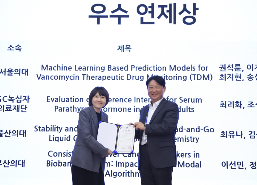GC녹십자의료재단(대표원장 이상곤, 이하 GC Labs)은 지난 16일과 17일 양일간 개최된 대한임상화학회 2025년 추계학술대회에서 우수논문상, 우수연제상 및 데이터분석상(우수상) 등 3개 부문 우수상을 수상했다.