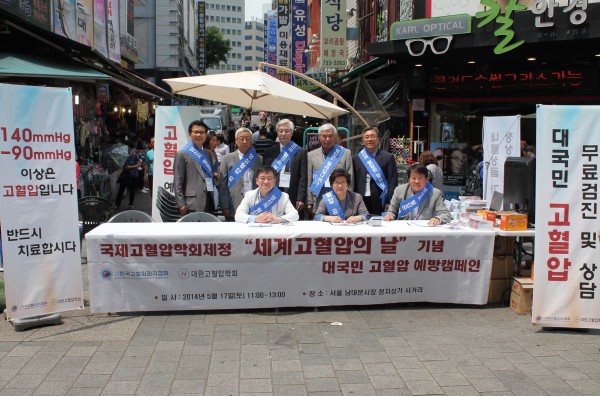 한국고혈압관리협회(회장 배종화)가 국제고혈압학회가 제정한 ‘세계 고혈압의 날(5월 17일)을 맞아 지난 17일 서울 남대문시장 청자상가 사거리에서 대국민 고혈압 예방 캠페인을 개최했다.
