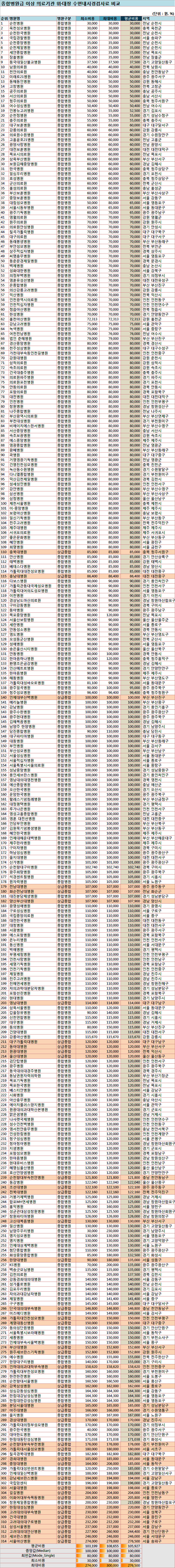 보건의료 분석평가 전문사이트인 팜스코어가 건강보험심사평가원의 최근(2015년 9월 11일 기준) 비급여 진료비 정보를 토대로 국내 종합병원이상 314개 의료기관(종합병원 272곳, 상급종합 42곳)의 위•대장 수면내시경 검사료를 분석한 결과다. 검사료는 최소 비용과 최대 비용으로 나눈뒤, 이를 평균 비용으로 산출했다.